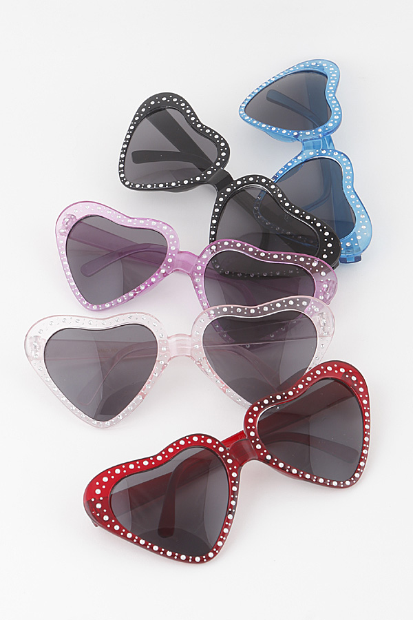 - * Rhinestone Embedded Heart Sunglasses