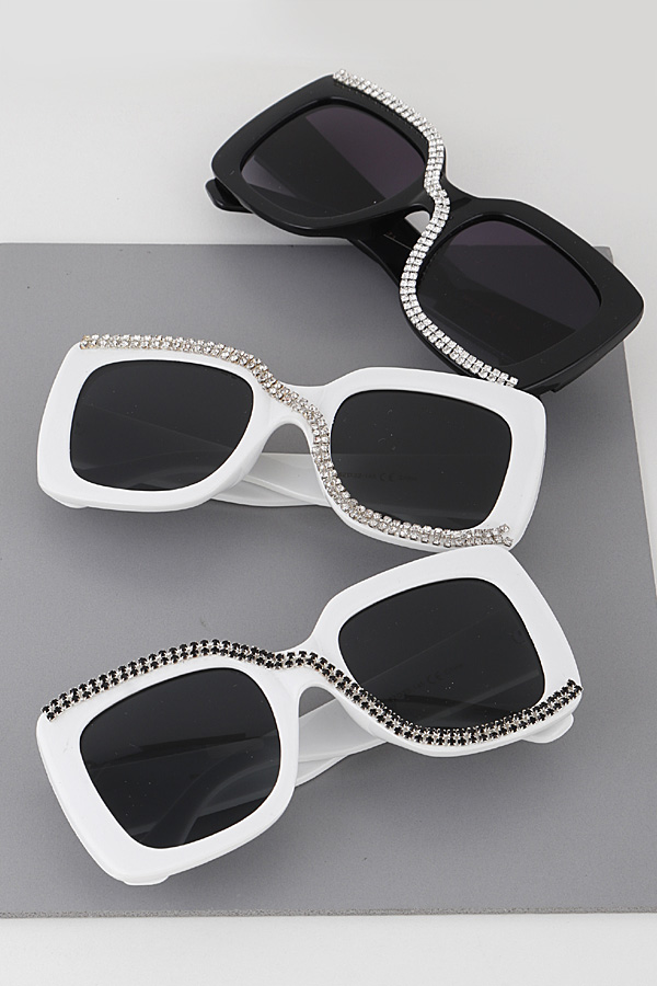 - * Across the Lens Jeweled Rectangular Sunglasses