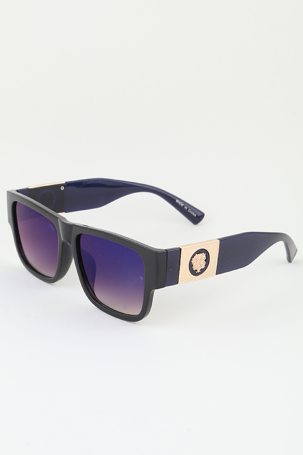 - * Introducing the "Side Lion Emblem Gradient Sunglasses" from H&D Accessories – a striking blend of style and sophistication. With their unique blue and black lenses, these sunglasses not only protect your eyes but also make a bold fashion statement. Elevate your accessory game with the Side Lion Emblem that symbolizes strength and elegance, perfect for those who dare to stand out.
