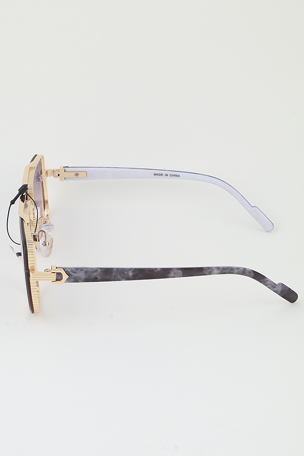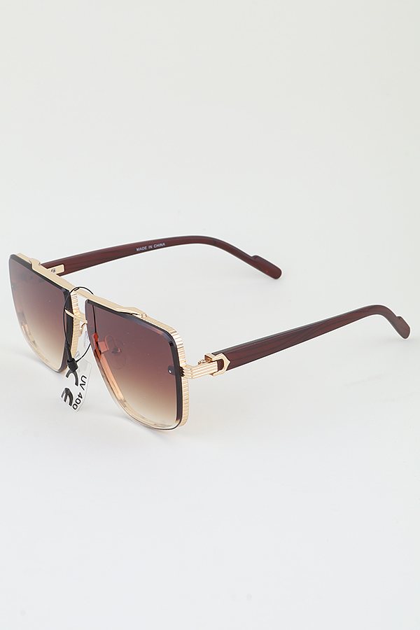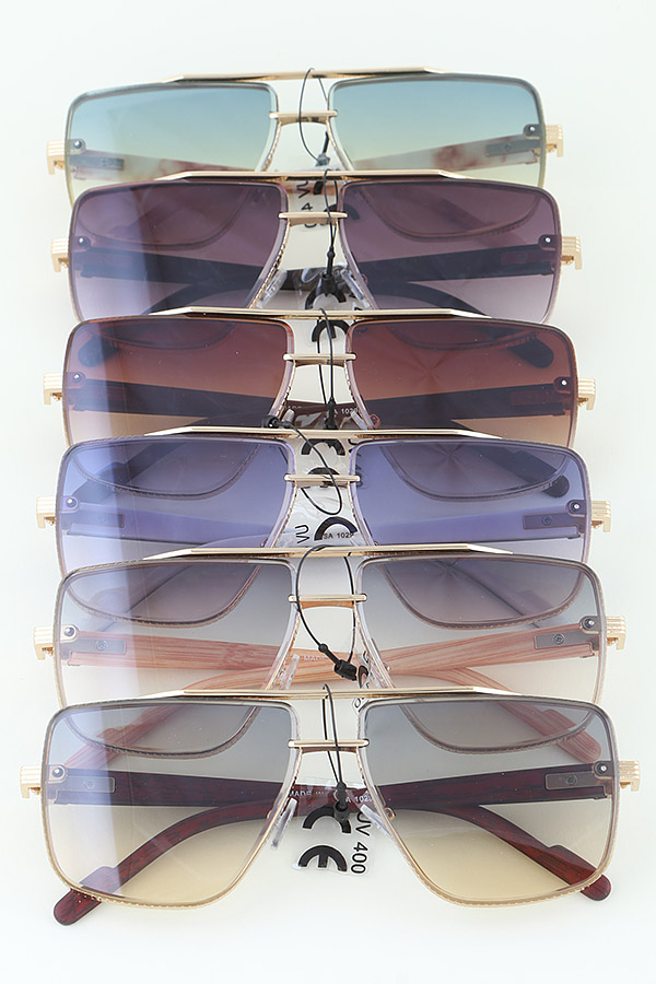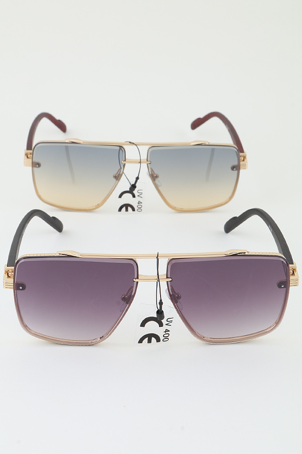 - * These Modern Grain Aviator Sunglasses from H&D Accessories blend contemporary design with classic aviator style. Each pair features a sleek, metallic frame with a unique grain texture, giving them a modern edge. The lenses come in a variety of gradient shades, providing both style and sun protection, as indicated by the "UV400" marking. The temples are carefully crafted, combining metallic elements with wooden - like finishes in some cases, enhancing the overall aesthetic and comfort.