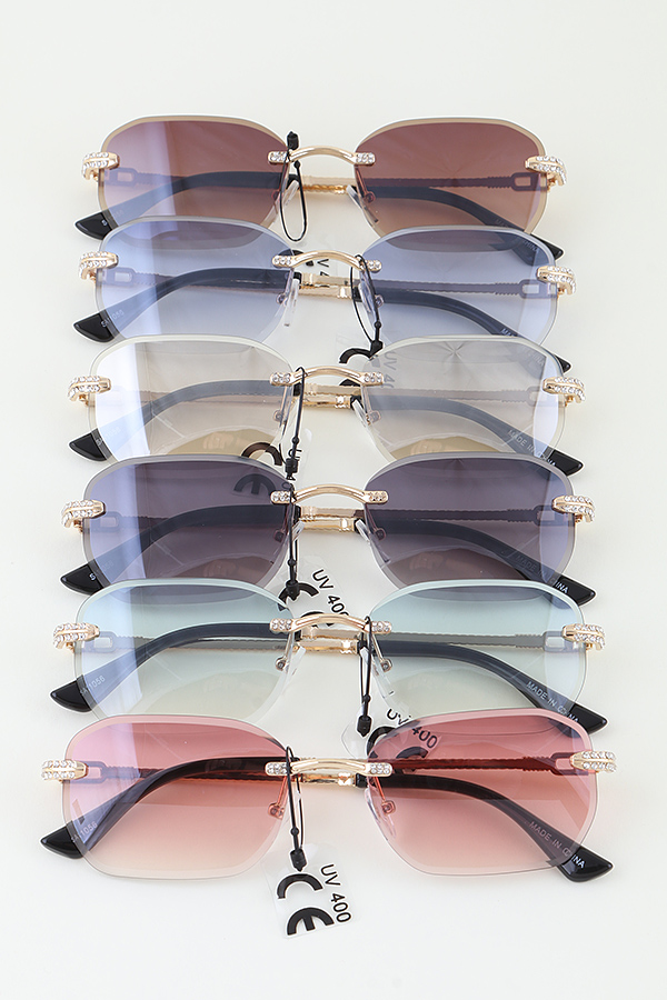 - * Bejeweled Rimless Bright Sunglasses from H&D Accessories are a stylish and glamorous choice. These sunglasses feature a unique rimless design adorned with sparkling jewels, adding a touch of elegance and luxury. The bright lenses not only provide a fashionable look but also offer UV 400 protection, shielding your eyes from harmful sun rays. They are perfect for outdoor events, beach vacations, or any occasion where you want to make a statement with your eyewear.