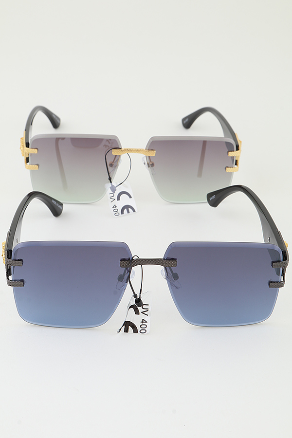 - * These are Rimless Diamond Cut Engraved Sunglasses from H&D Accessories. They boast a sleek rimless design, with diamond - cut and engraved details on the frames that add a touch of luxury and uniqueness. The sunglasses provide UV protection, making them perfect for various occasions. Whether you're attending a stylish outdoor party, going for a drive along the coast on a sunny day, or simply strolling through the city to show off your fashion sense, these sunglasses not only shield your eyes from the sun but also elevate your overall look with their distinctive and elegant design.