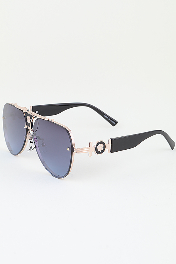 - * These Modern Lion Emblem Aviator Sunglasses from H&D Accessories feature a bold, structured frame with a detailed lion emblem at the bridge and temple for a touch of iconic flair. Designed with gradient lenses that offer both style and sun protection, they are perfect for weekend getaways, beach days, or city strolls, adding a sleek, confident finish to any casual or elevated outfit.