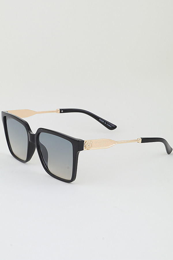 - * This Lion Emblem Box Gradient Sunglasses from H&D Accessories features a bold, angular square frame with a structured box silhouette, gradient lenses that offer subtle tonal variation and UV protection, and temple arms adorned with intricate lion emblem detailing alongside textured metallic accents for a regal, signature touch; its modern-luxury silhouette makes it a versatile accessory to elevate casual streetwear or add sophisticated charm to daytime outings and upscale events.