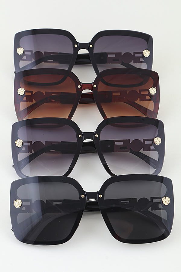 - * This Lion Emblem Butterfly Sunglasses from H&D Accessories features a bold, oversized butterfly-shaped frame with a sleek angular silhouette, adorned with intricate lion emblem accents at the front corners and geometric metallic detailing on the temple arms, paired with gradient lenses that offer UV protection and a subtle tonal fade; its glamorous, statement-making design makes it a standout accessory to elevate evening ensembles or add luxurious flair to sunny daytime outings.