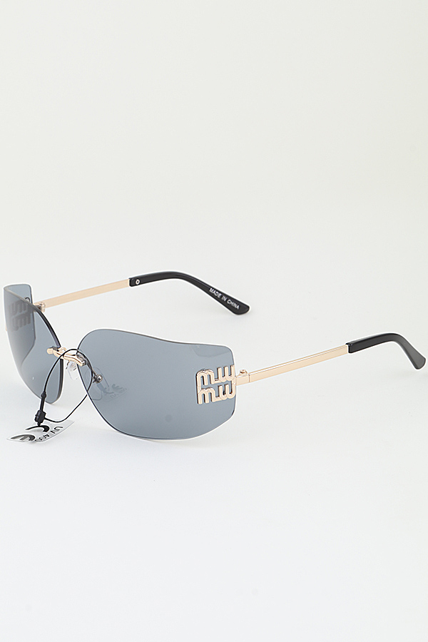 - * This MW Frame Rimless Wrap Sunglasses from H&D Accessories features a sleek rimless wrap-style lens design, adorned with bold metallic MW emblem accents on the front edges, paired with thin metal temple arms and smooth curved earpieces for a lightweight, comfortable fit, while the tinted lenses offer UV400 protection; its modern, minimalist silhouette makes it a versatile accessory to elevate casual streetwear or add sophisticated glamour to daytime outings and special occasions.
