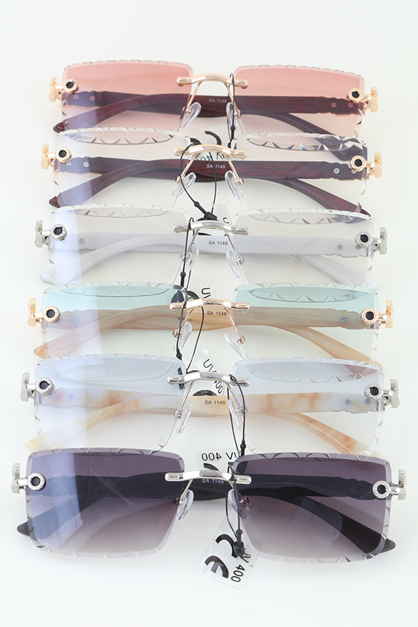 - * Chic Cheetah Rimless Sunglasses from H&D Accessories feature a sleek, rimless design with decorative cheetah-inspired accents, offering reliable UV400 protection. Ideal for upscale events, beachside soirees, or city brunch dates, these sunglasses blend minimalist elegance with bold, eye-catching details. The lightweight construction ensures a comfortable, barely-there fit, making them a sophisticated and versatile accessory for any stylish occasion.