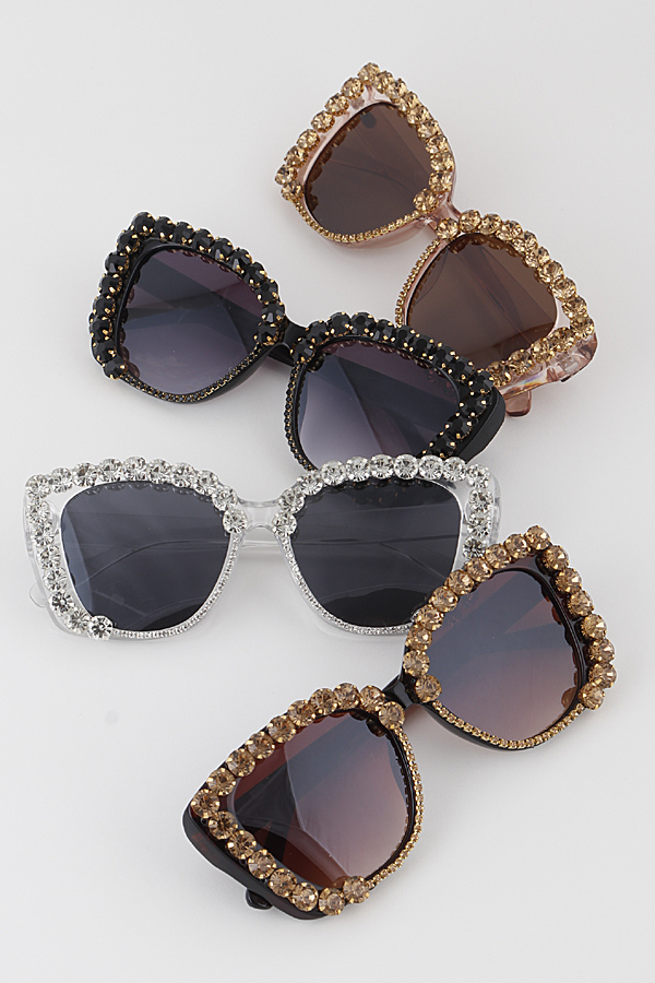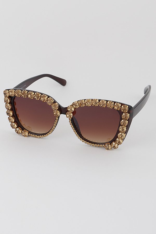 - * Luxury Bejeweled Cateye Frame Sunglasses