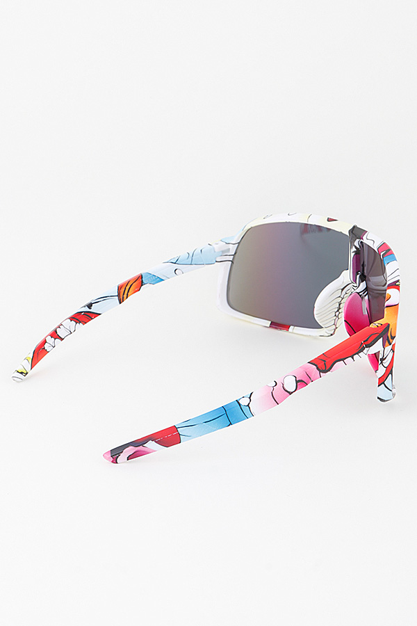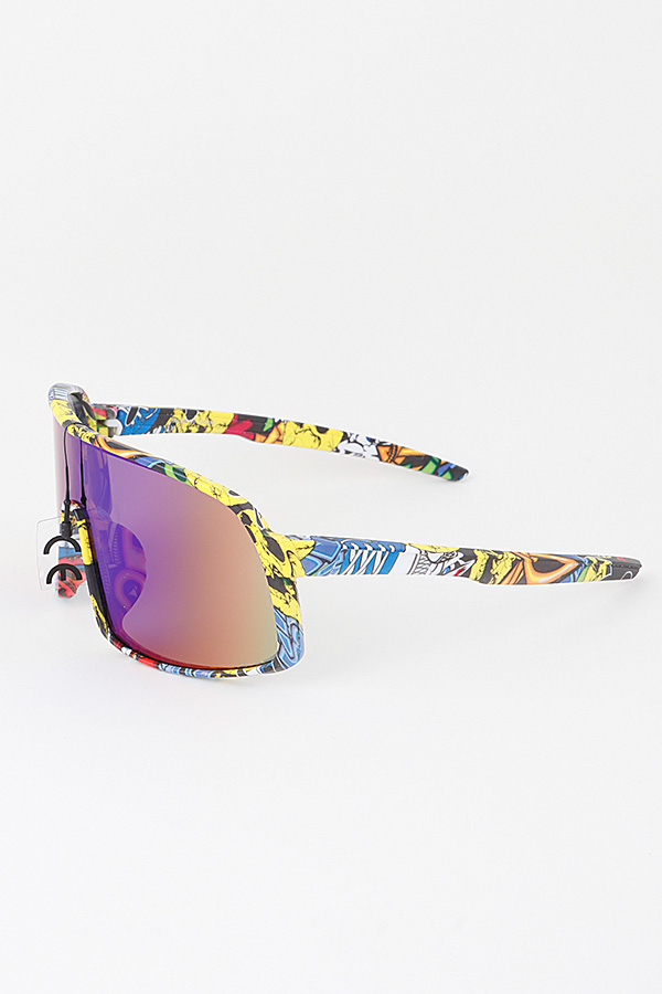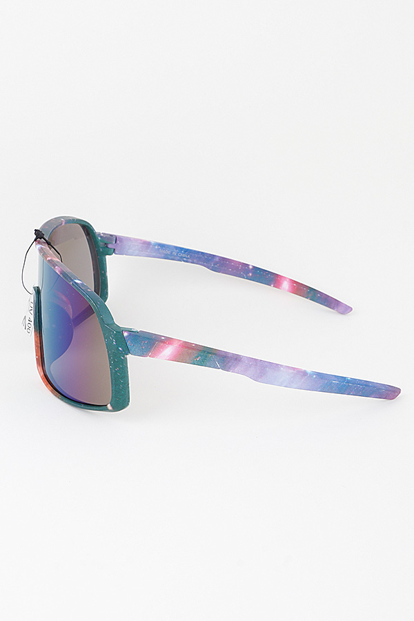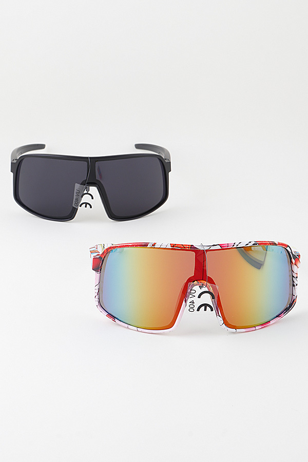 - * Elevate your look with the "Colorwave Shield" sunglasses by H&D accessories! These oversized graphic curved shield sunglasses come in a range of eye-catching colors, making them the perfect statement piece for any fashion-forward individual.