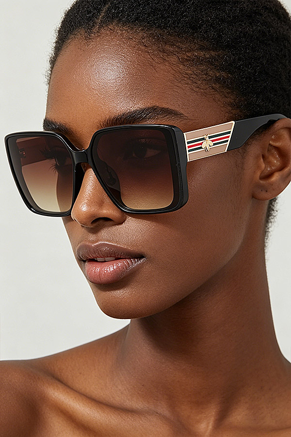 - * These Luxury Bee Gradient Box Sunglasses from H&D Accessories feature a bold, oversized boxy frame with a smooth, sleek finish, fitted with gradient lenses that offer UV 400 protection to shield eyes from harmful sun rays, accented with a subtle bee-inspired detail on the inner frame for a luxurious, designer-inspired touch, lightweight and comfortable for extended wear, perfect for elevating summer outfits, beachwear, vacation looks, or everyday street style for a chic, statement-making aesthetic.