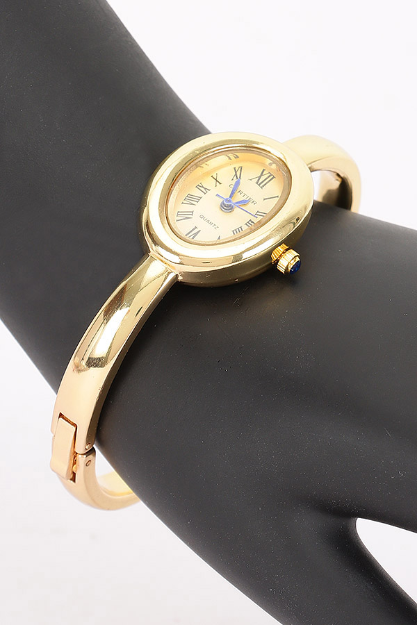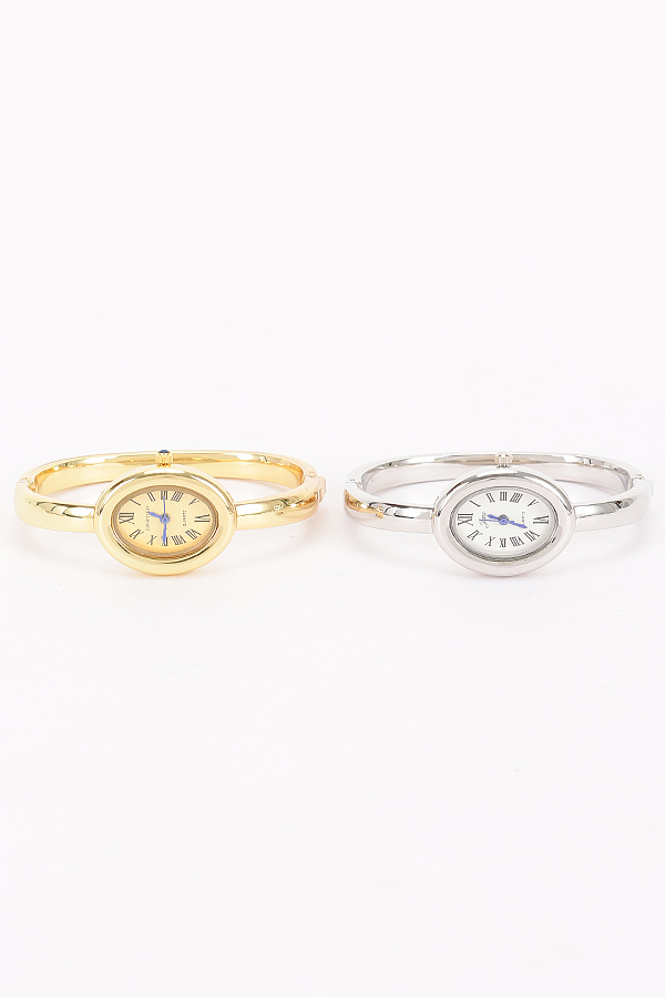 - * This elegant timepiece is an Oval Dial Bangle Watch with Roman Numerals from H&D Accessories. It features a classic oval dial adorned with Roman numerals, a sleek bangle-style band, and a refined design that exudes timeless charm. The watch is perfect for both casual and formal occasions—whether you’re attending a business meeting, going for a brunch date, or dressing up for a special event, it adds a touch of sophistication to any outfit. Its minimalist yet luxurious look makes it a versatile accessory that can effortlessly elevate your style.