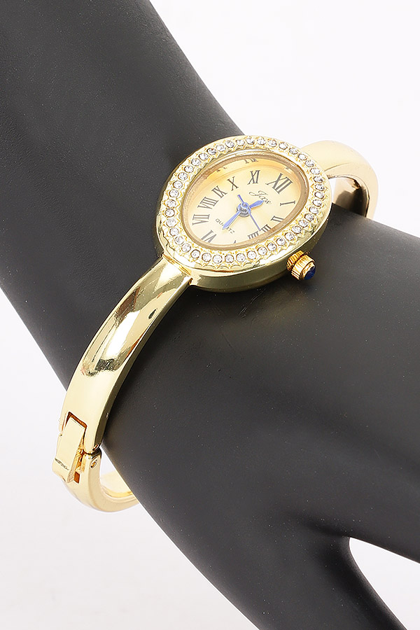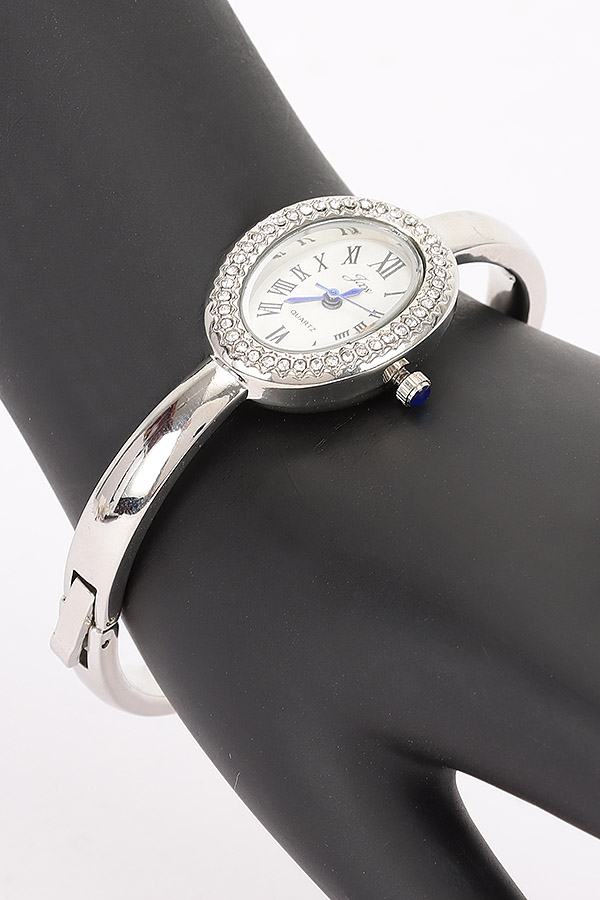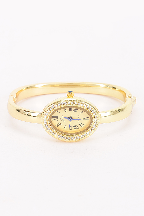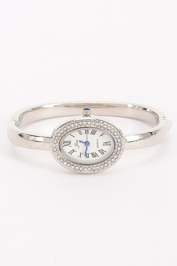 - * This Oval Crystal-Encrusted Cuff Watch from H&D Accessories features an oval dial with crystal embellishments and a cuff-style band. It has an elegant and sophisticated appearance, giving off a luxurious and stylish vibe.Ideal for complementing evening wear or business attire at events like galas, meetings, or award ceremonies, adding a touch of refinement.