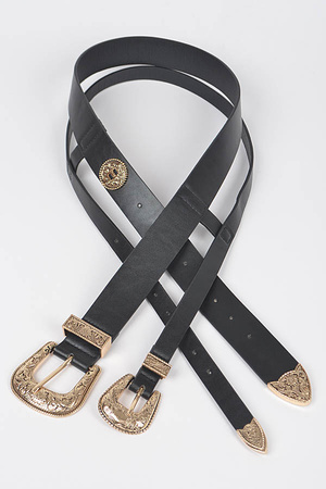 Rhinestone Buckle Metallic Plus Size Belt W/Chain