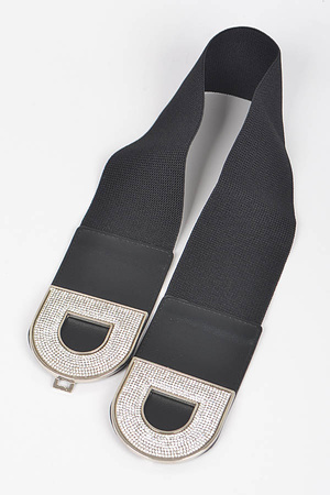 Rhinestone Two Buckle Plus Size Elastic Belt