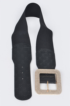 Big Rhinestone Buckle Embossed Elastic Belt