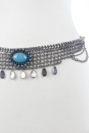 Antique Stone Bead Centered Chain Belt 5FAI