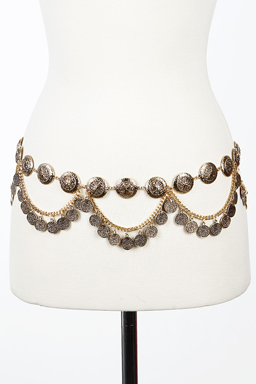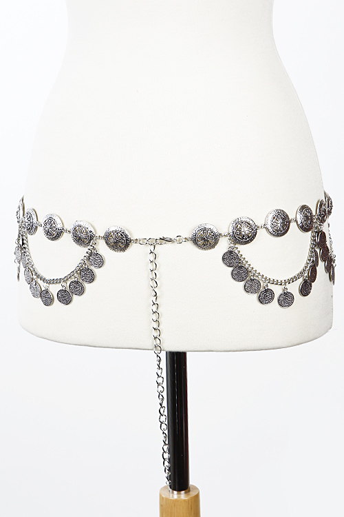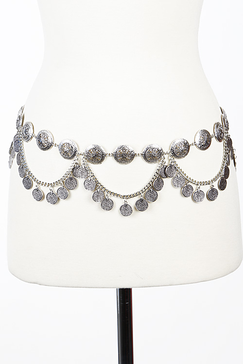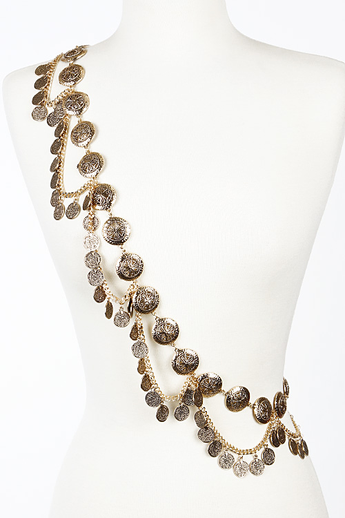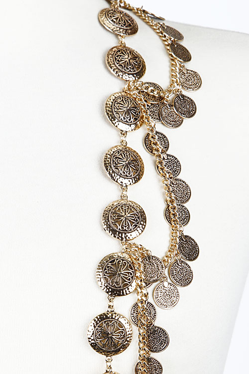 - * Three Way Medallion Hanging Chain Link Necklace 5GAI3 * 40" approx. * Can wear as a belt