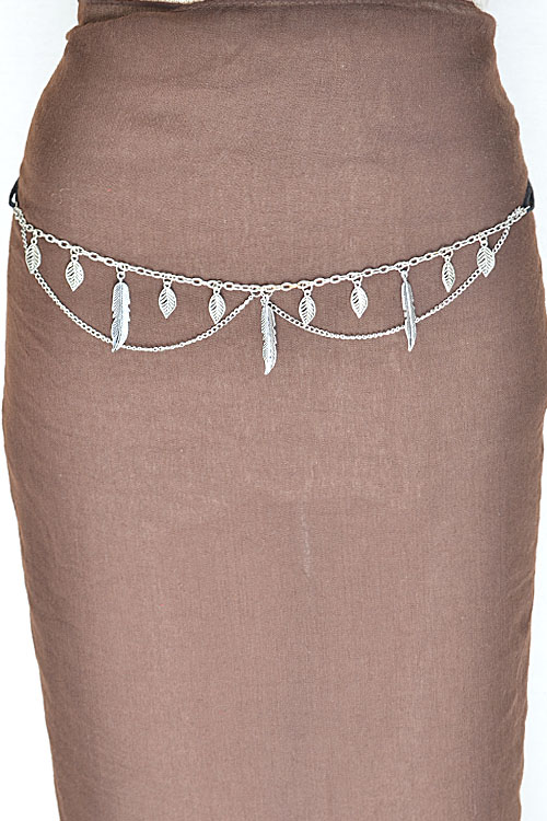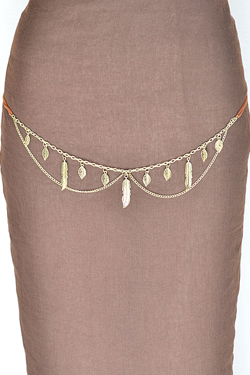 - * Dangling Feather Leaf Chain Belt * POLYURETHANE/ ELASTIC. * APPROX. WIDTH:".LENGTH38"