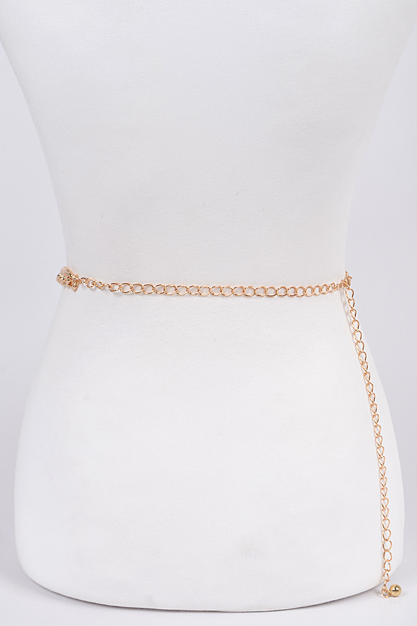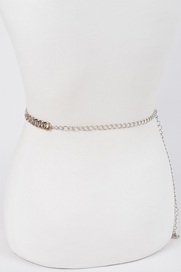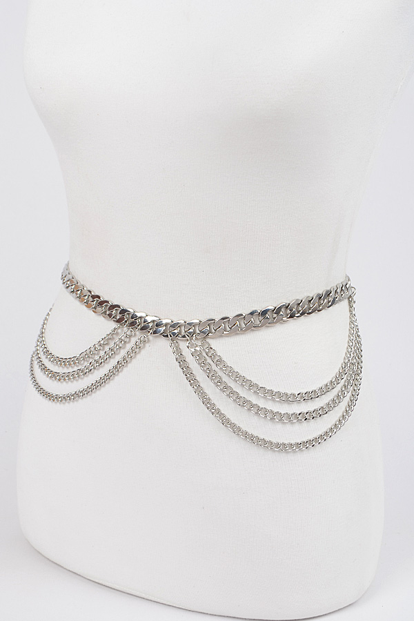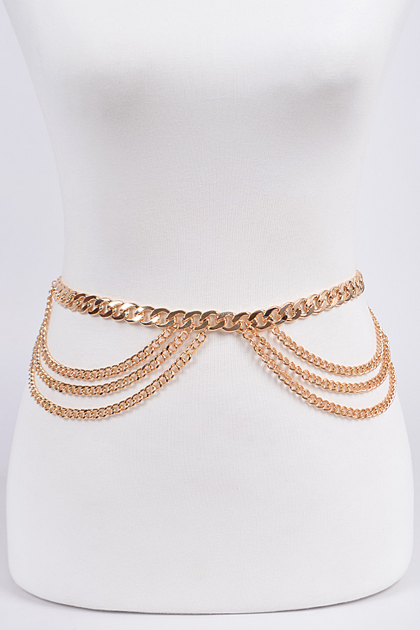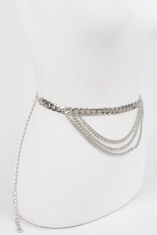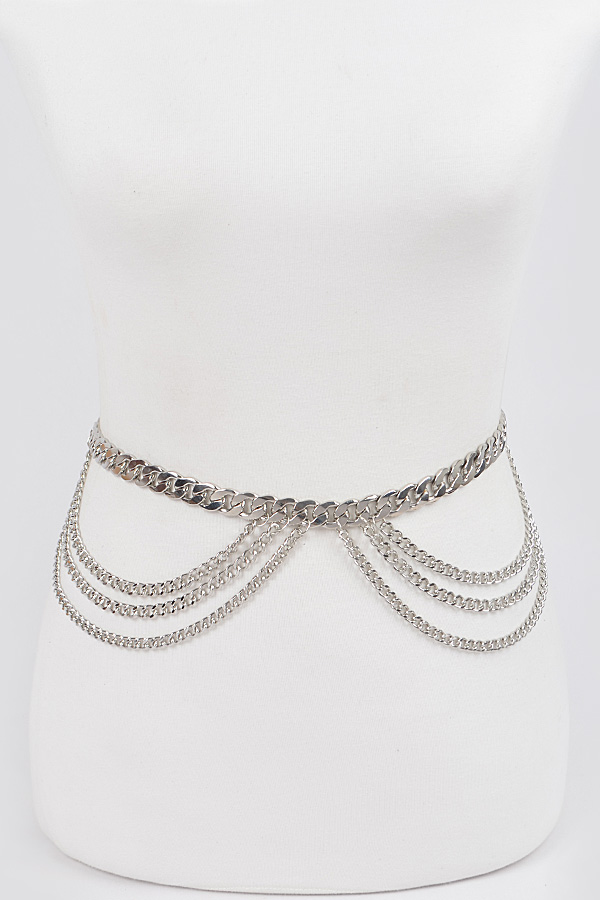 - * This Symmetric Chain Belt from H&D Accessories is a striking fashion piece. It features a well - crafted design with a central chain that is flanked by multiple smaller chains on either side, creating a perfectly symmetrical and eye - catching pattern. The chains are linked together with precision, giving the belt a cohesive and elegant look. Ideal for accessorizing dresses, tops, or high - waisted bottoms, it adds a touch of glamour and can transform any outfit into a statement look, whether for a night out or a special event.