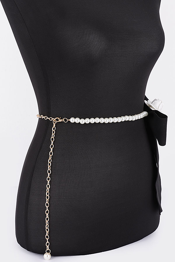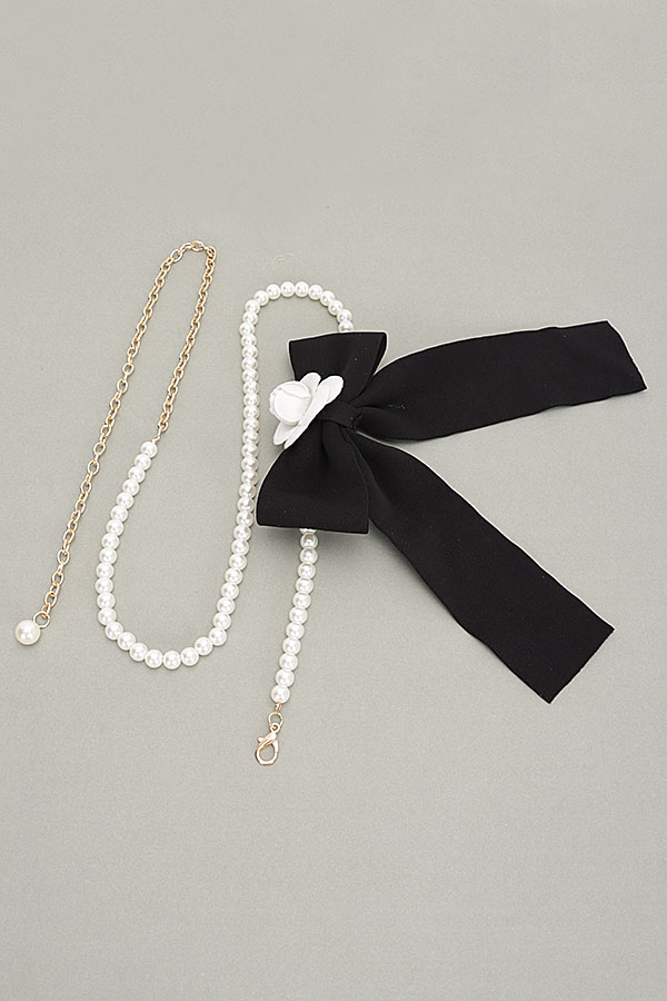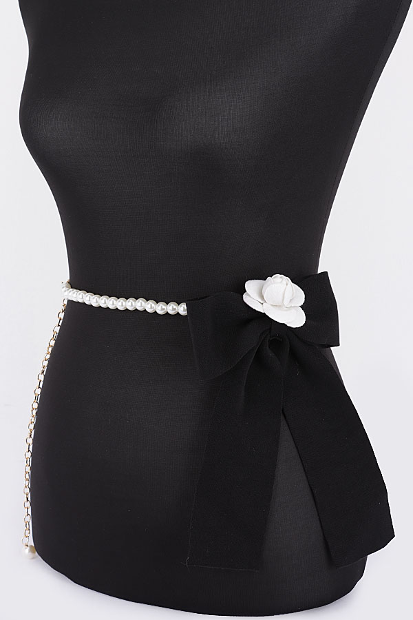 - * Introducing the "Elegance Noir" belt - the perfect accessory to elevate your style! This exquisite belt features a charming bow adorned with a lustrous faux pearl. With its delicate flower ribbon design, the Belt H&D Accessories Flower Ribbon Faux Pearl Belt adds a touch of sophistication to any outfit. Embrace timeless elegance and make a statement with the "Elegance Noir" belt.