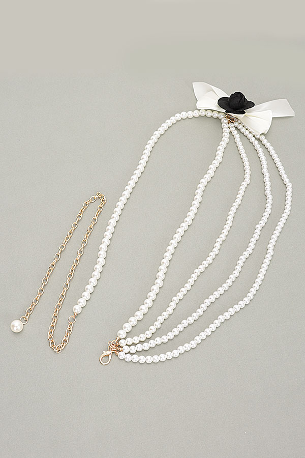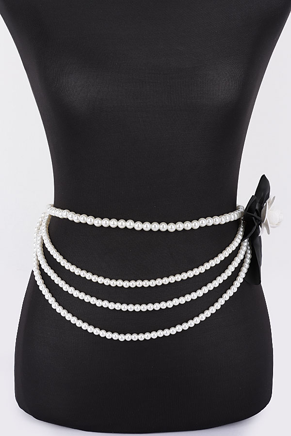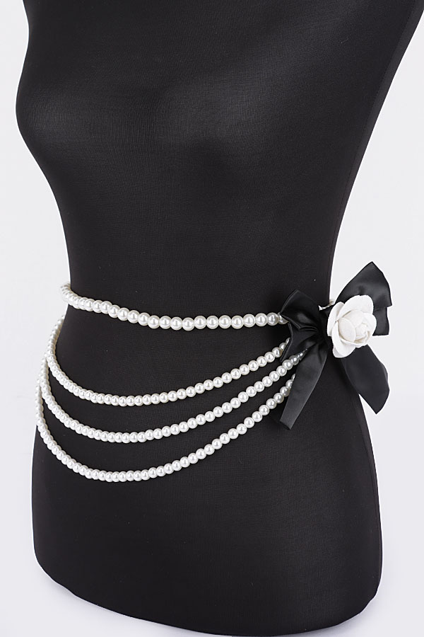 - * Elevate your style with the Layered Faux Pearl Flower Ribbon Belt by H&D Accessories. This stunning waist belt features layers of faux pearls and a charming bow detail, perfect for adding a touch of sophistication to any outfit.