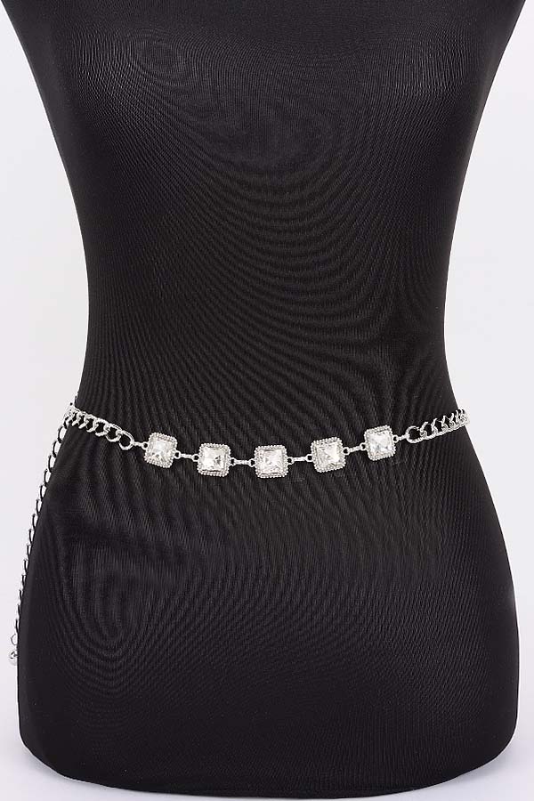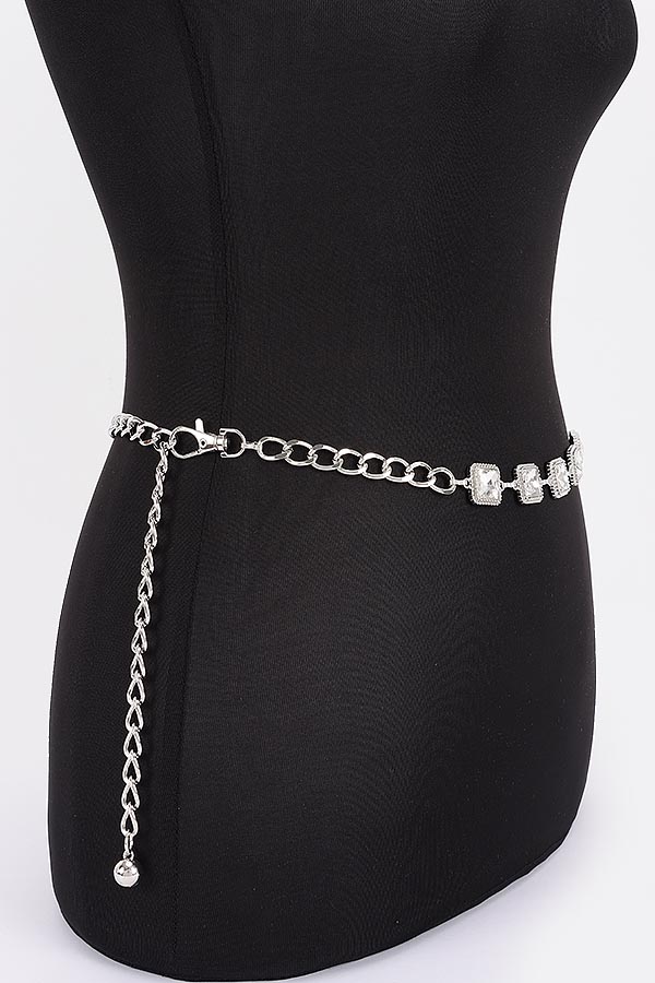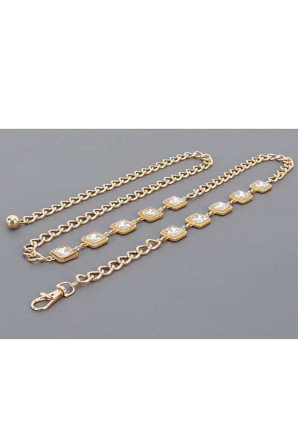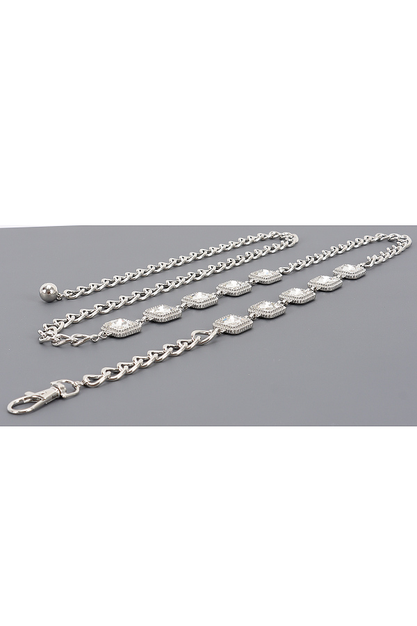 - * This Rhinestone Metal Chain Belt from H&D Accessories is a glamorous accessory. It features a metal chain design, interspersed with sparkling rhinestones set in square frames. The combination of the sleek metal chain and the dazzling rhinestones creates an eye - catching and luxurious look. This belt is perfect for adding a touch of elegance and sparkle to any outfit.