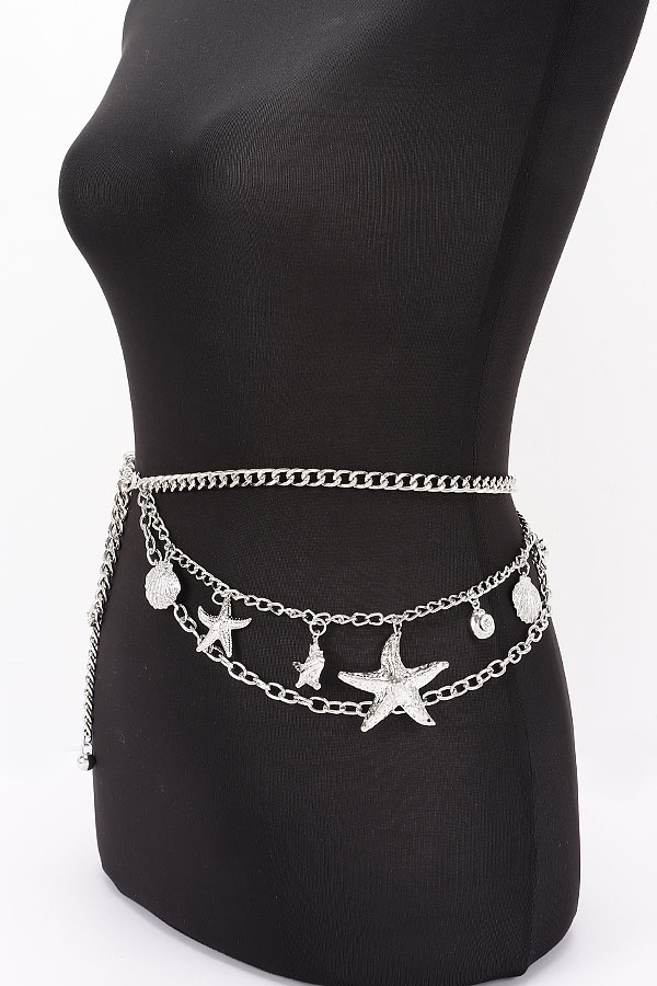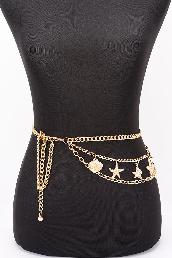 • * This Seashell Starfish Layered Chain Belt from H&D Accessories features a layered design with seashell and starfish charms. It has a beachy and playful appearance, giving off a fun and stylish vibe.Ideal for adding a seaside touch to swimsuits, cover - ups, or casual beachwear when going to the ocean, tropical vacations, or pool parties.