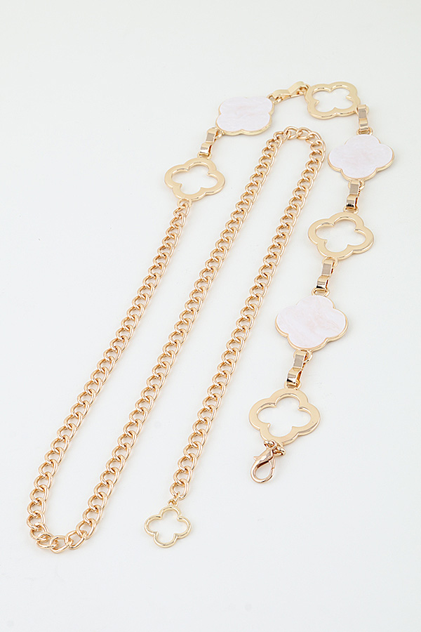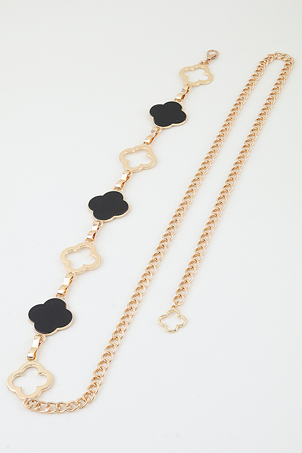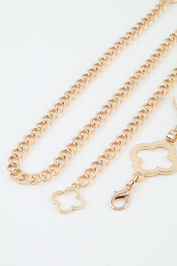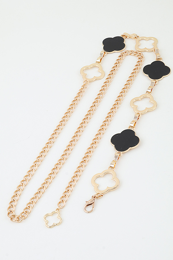 - * This Multi Open Clover Chain Belt from H&D Accessories features a polished, interlinked chain structure adorned with alternating open-frame clover cutouts and solid clover-shaped panels with a smooth finish, creating a sleek, adjustable design with a secure clasp closure, perfect for cinching dresses, high-waisted pants, or blazers to add a chic, timeless flair to everyday outfits, office looks, or evening ensembles.