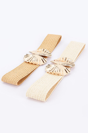 Faux Straw Metal Flower Stretch Belt