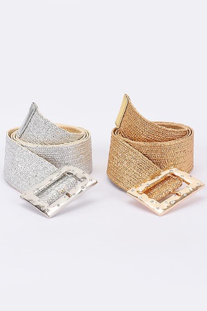 Multi Stone Metallic Straw Stretch Belt