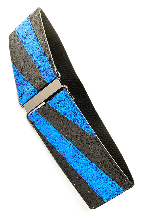 • * Glitter stretch belt * Polyurethane, elastic * Approx. Width: 3". Length: 27"
