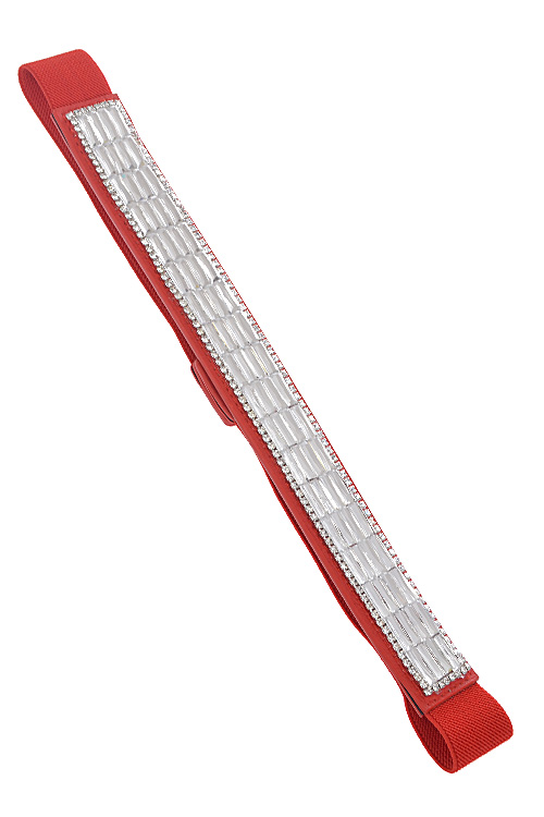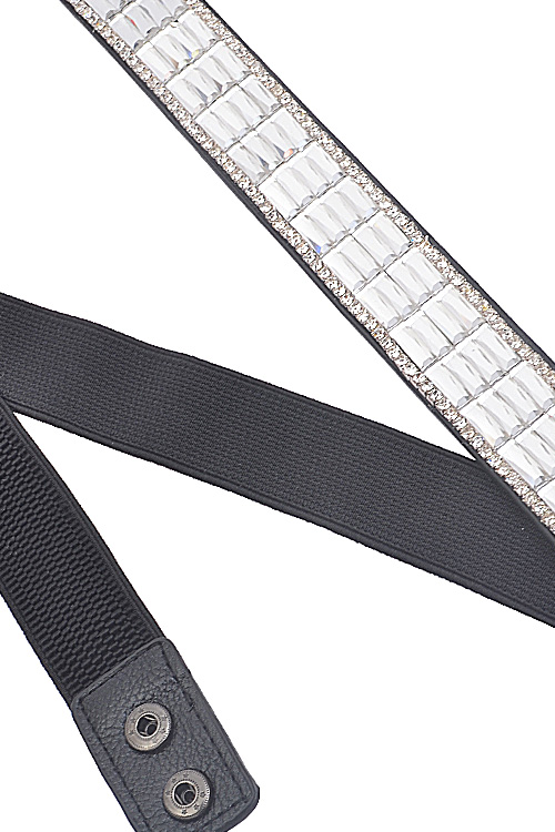 • * Rectangle Rhinestone Studded Elastic Belt * POLYURETHANE/ ELASTIC. * APPROX. WIDTH:1.25".LENGTH28"