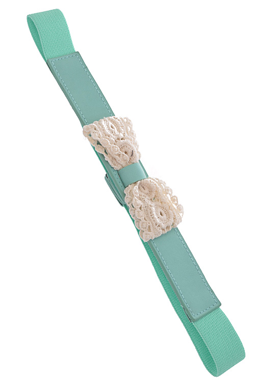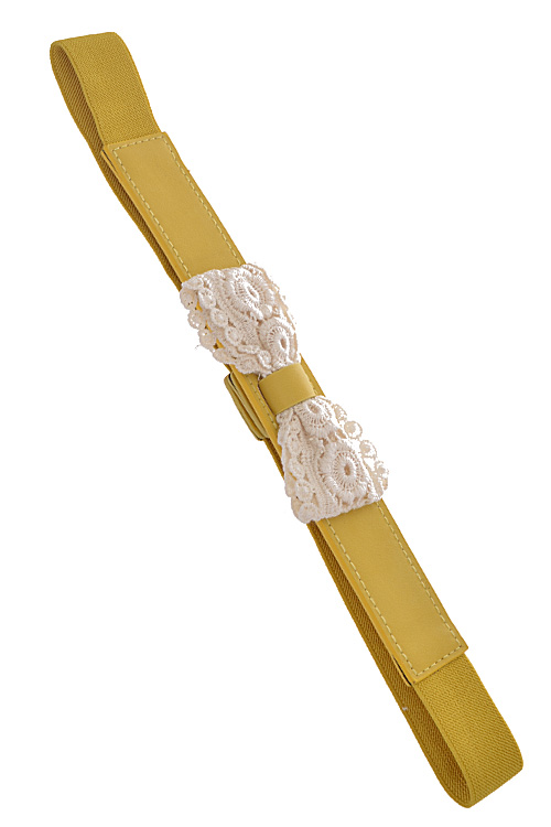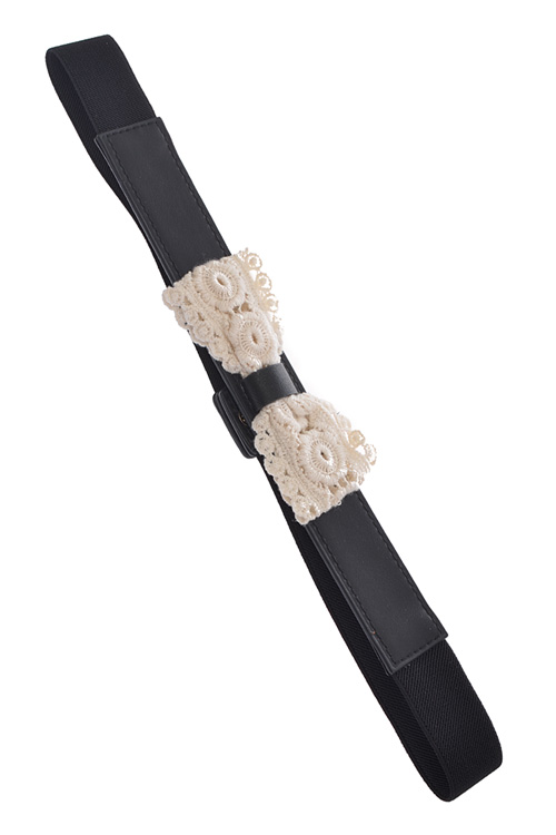 • * Lace Ribbon Shape Detailed Elastic Belt * POLYURETHANE/ ELASTIC. * APPROX. WIDTH:1.25".LENGTH28"
