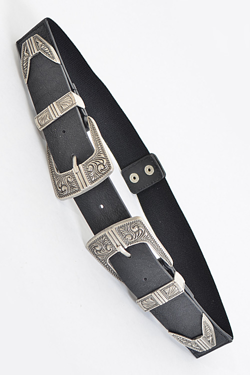 - * Square Edged Belt With Antique Design * POLYURETHANE/ ELASTIC. * APPROX. WIDTH:2.25".LENGTH29.5"
