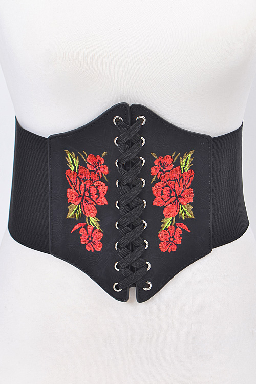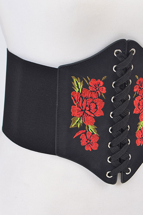 - * Corset Thick Belt With Red Rose Details * POLYURETHANE/ ELASTIC. * APPROX. WIDTH:7.5".LENGTH:29.25"