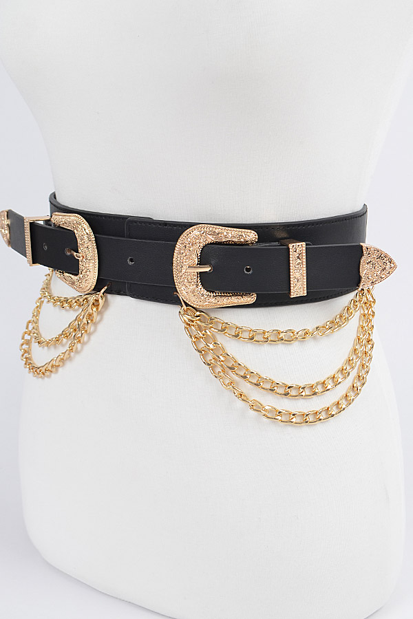- * Double Buckle Belt with Chains