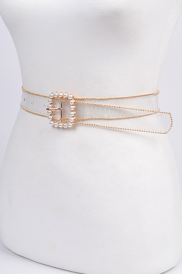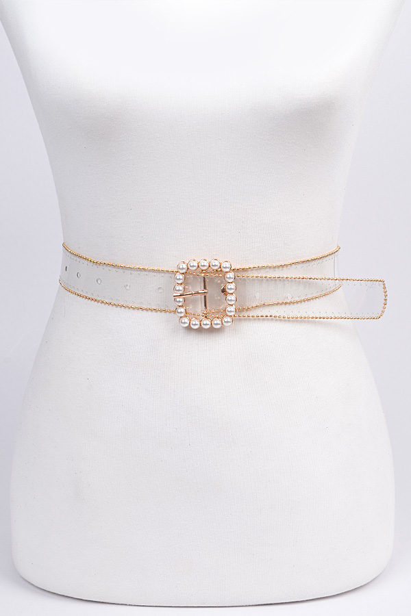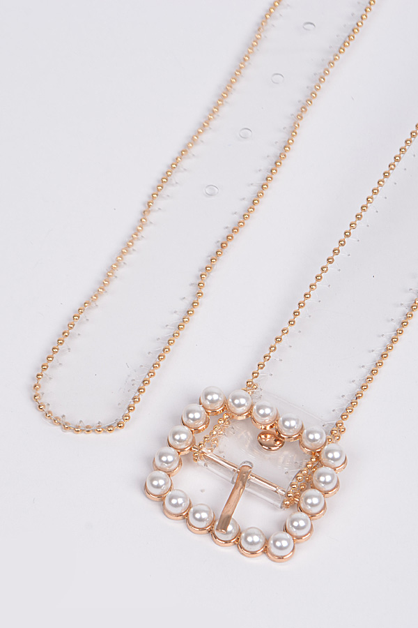 - * Bead Frame Belt With Pearl Buckle