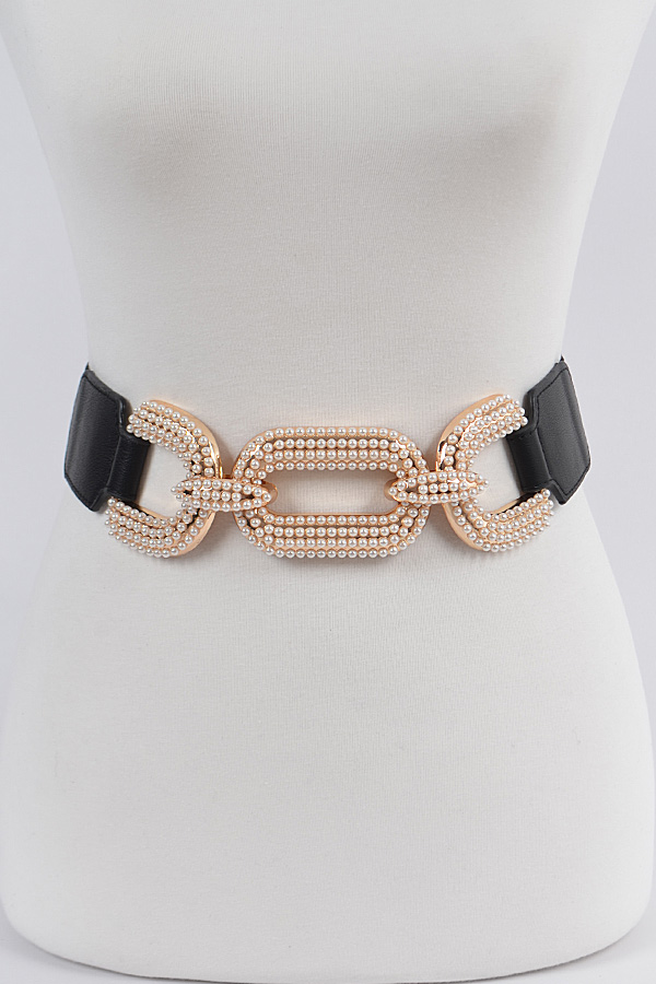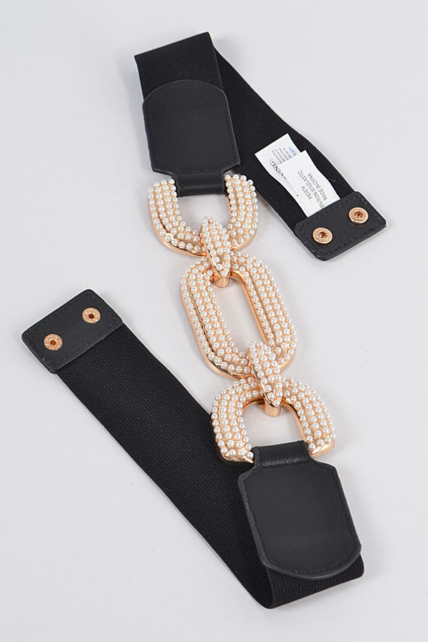 - * Metal W/Pearl Buckle Elastic Waist Belt