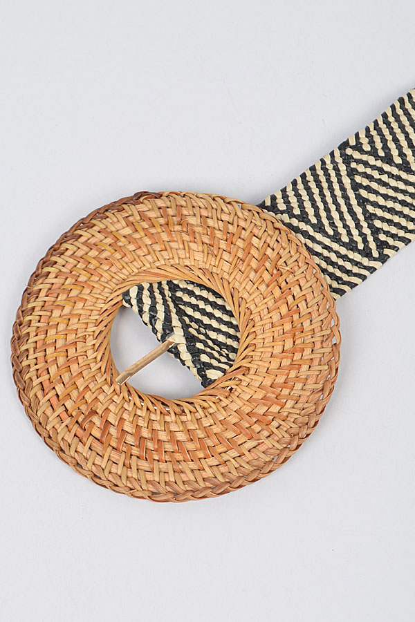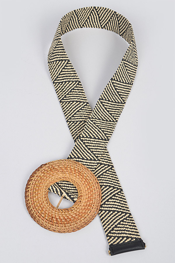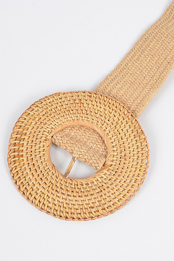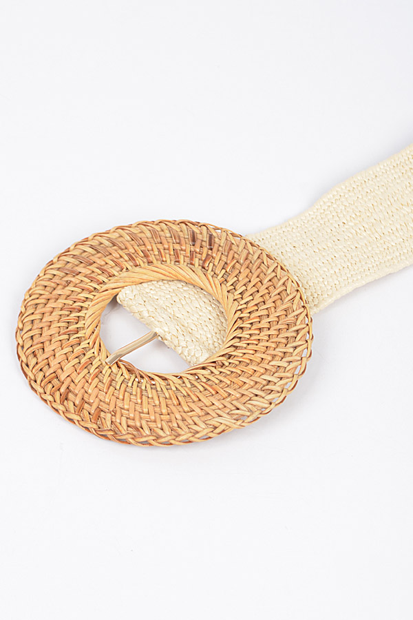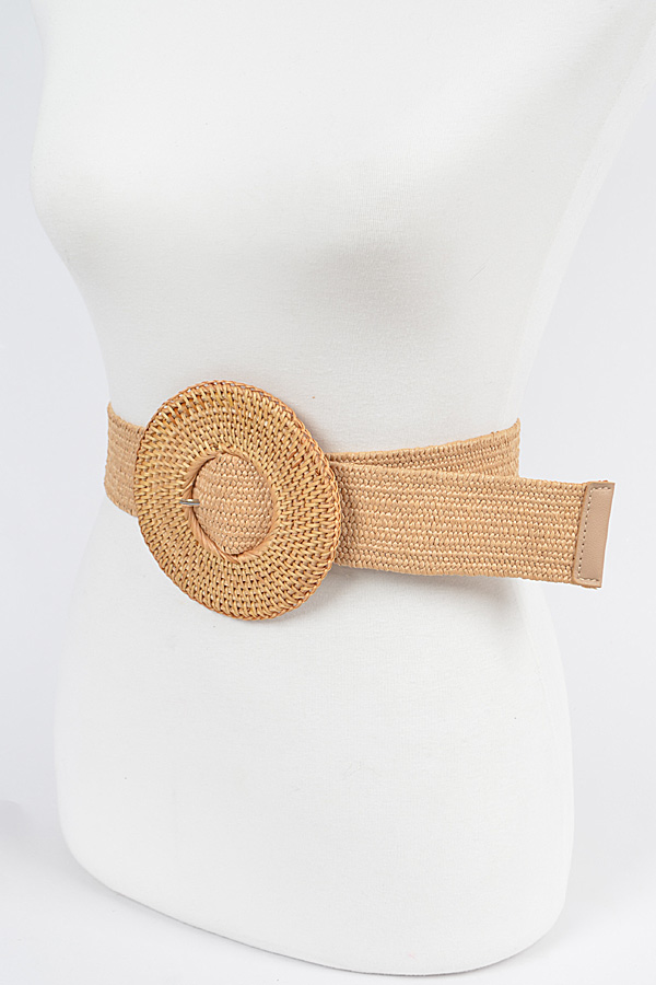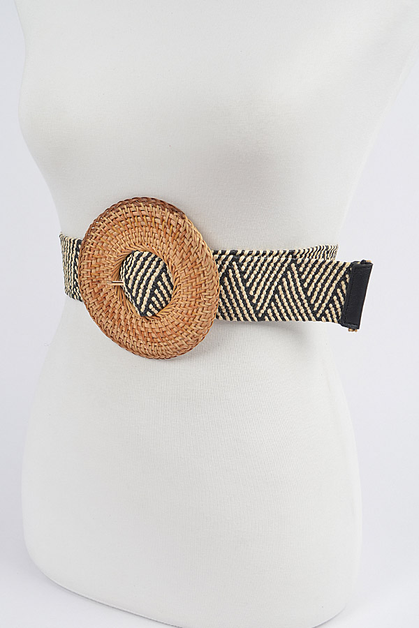 - * Oversize Weaved Bamboo Buckle Elastic Belt