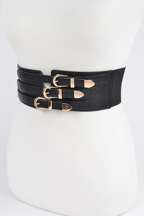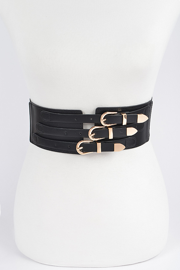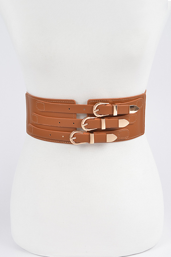 - * Faux Leather Multi Metal Waist Belt