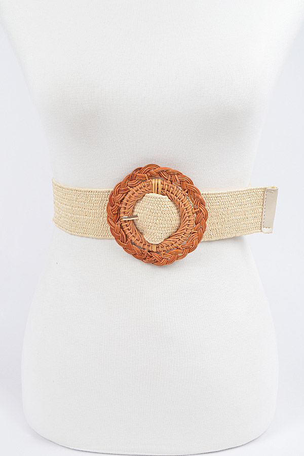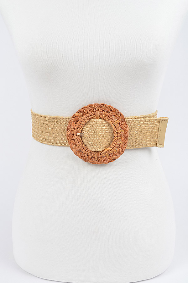 • * Handmade Bamboo Buckle Stretch Straw Belt