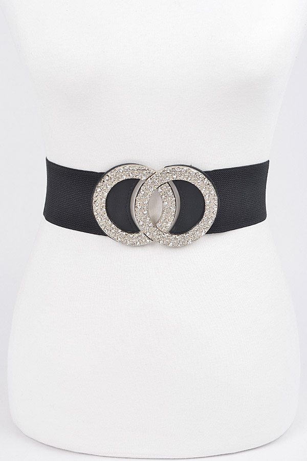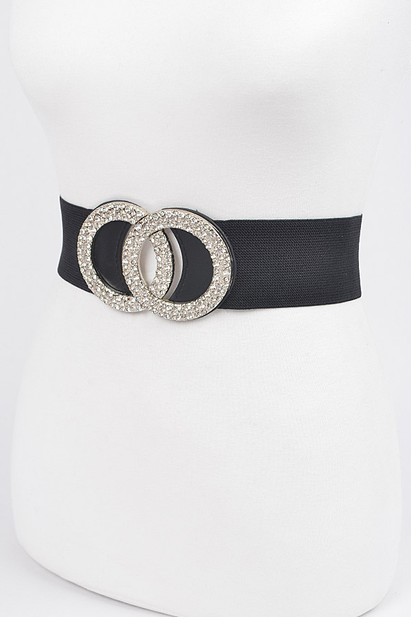 - * Rhinestone Buckle Elastic Belt