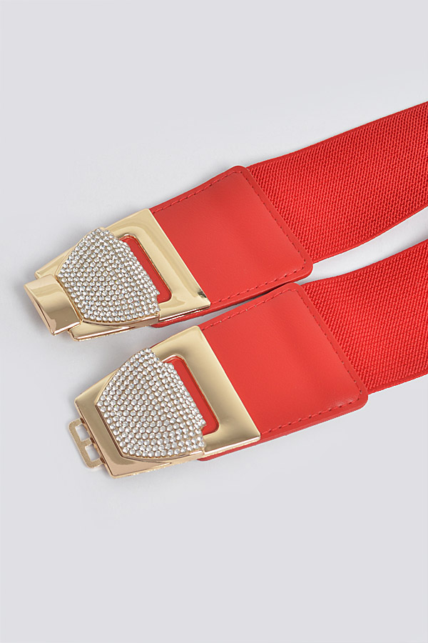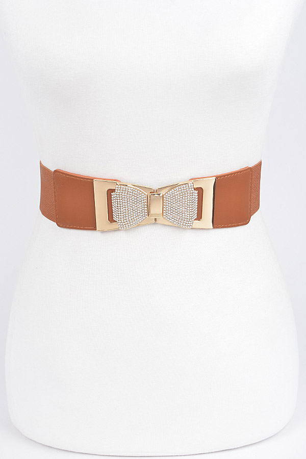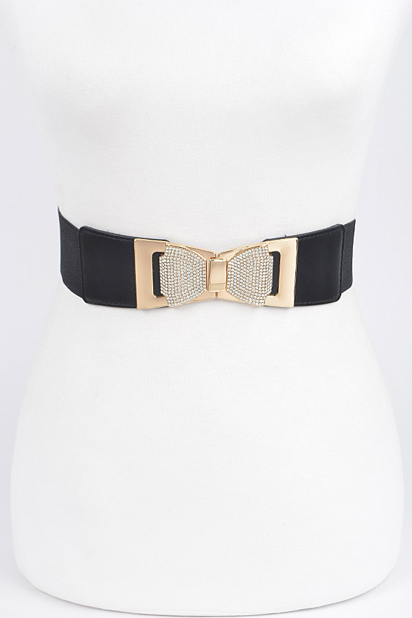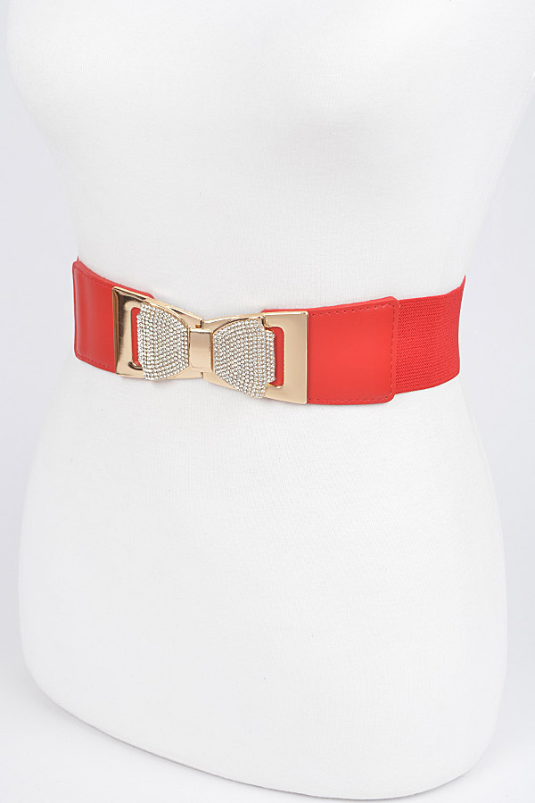 • * Rhinestone Ribbon Buckle Stretch Belt