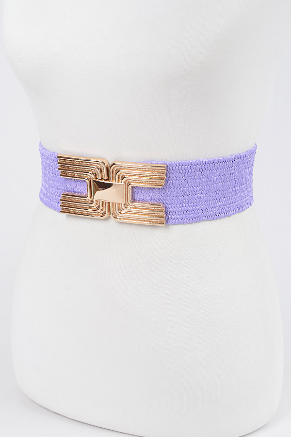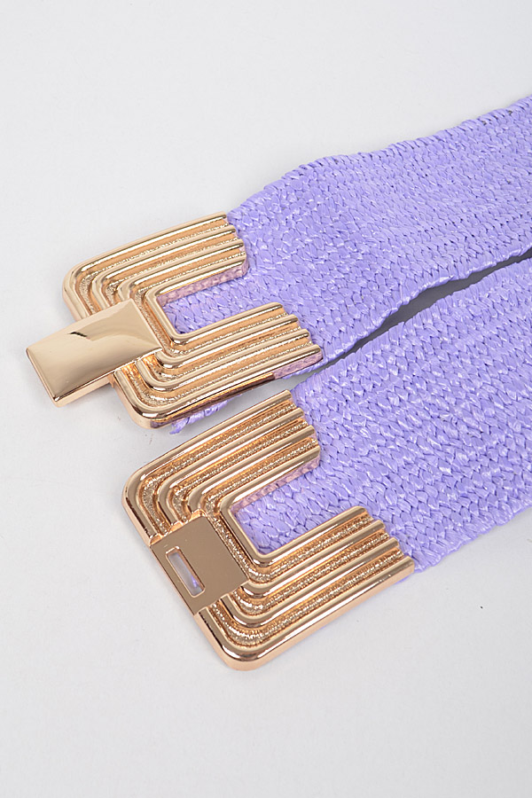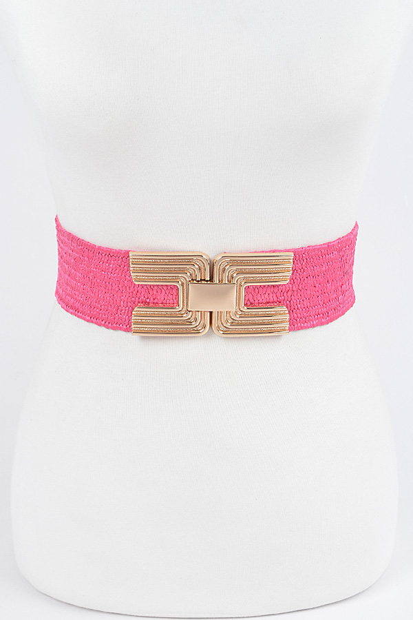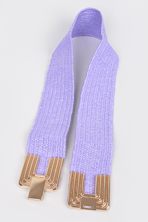 - * Big Metal Buckle Faux Straw Stretch Belt