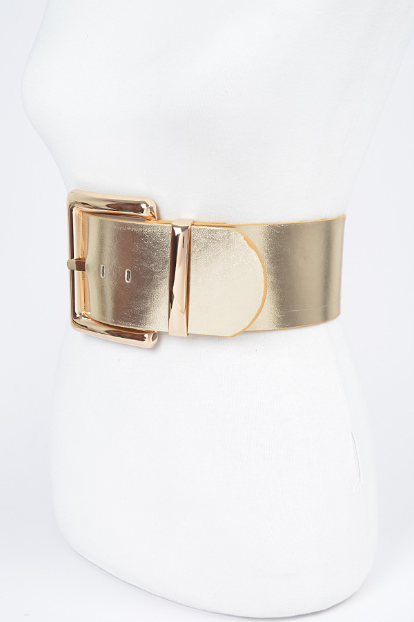 - * Oversized Metal Buckle Metallic PU Waist Belt