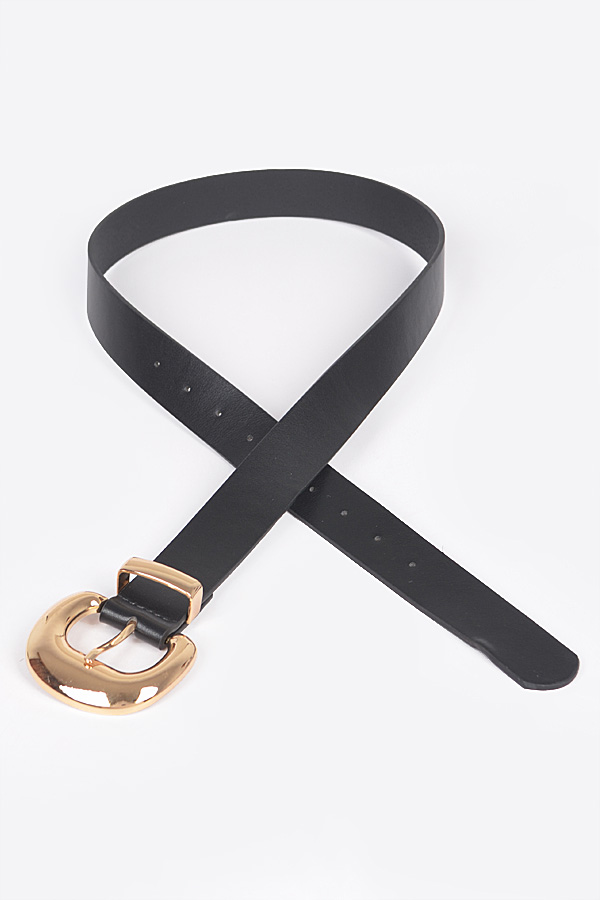 - * Discover the "Faux Leather Metal Buckle Belt" – the perfect accessory for the modern woman. Crafted from high-quality faux leather, this belt showcases a bold metal buckle that exudes confidence and charm. Make a statement with this exquisite piece from H&D Accessories.