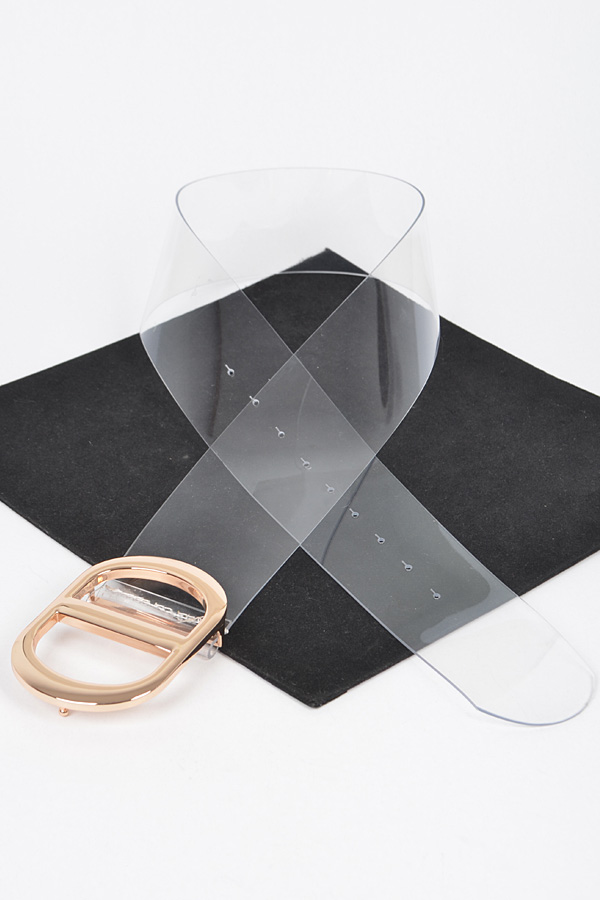 - * Big Metal Buckle Clear Belt from H&D Accessories features a clear strap paired with a large, polished metal buckle in a distinctive double - ring design. It offers adjustable sizing for a customized fit. Ideal for adding a sleek, modern touch to dresses, oversized tops, or layered outfits, this belt effortlessly elevates your look for casual outings, parties, or everyday wear.