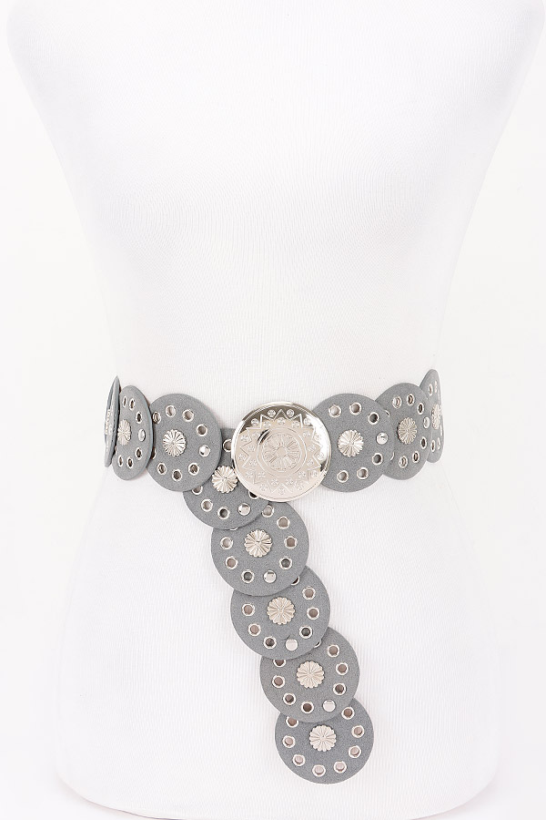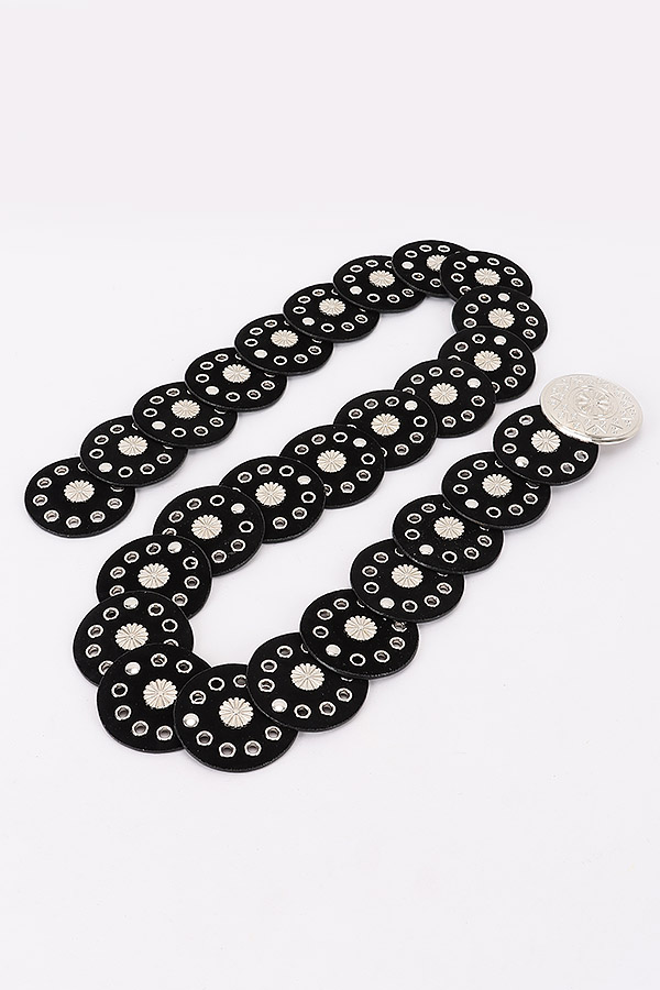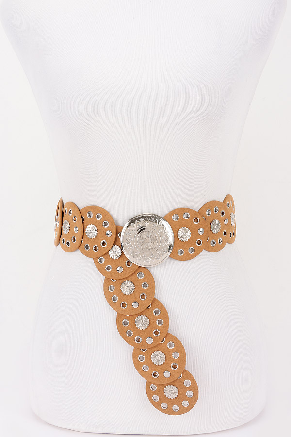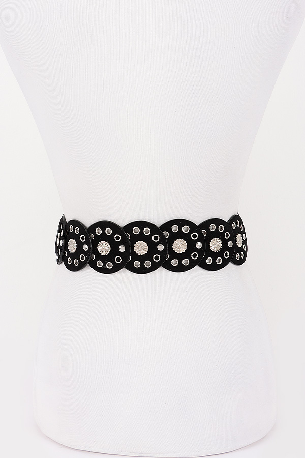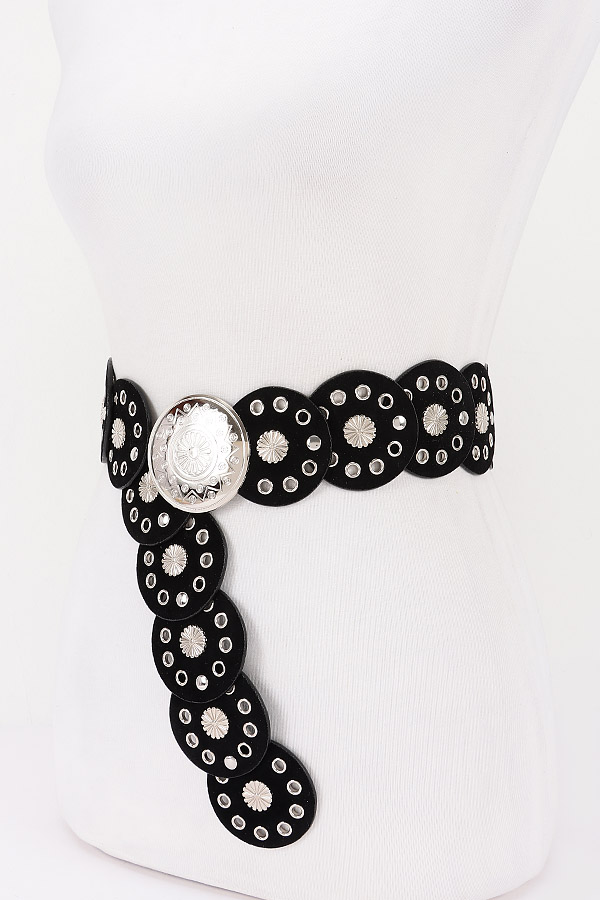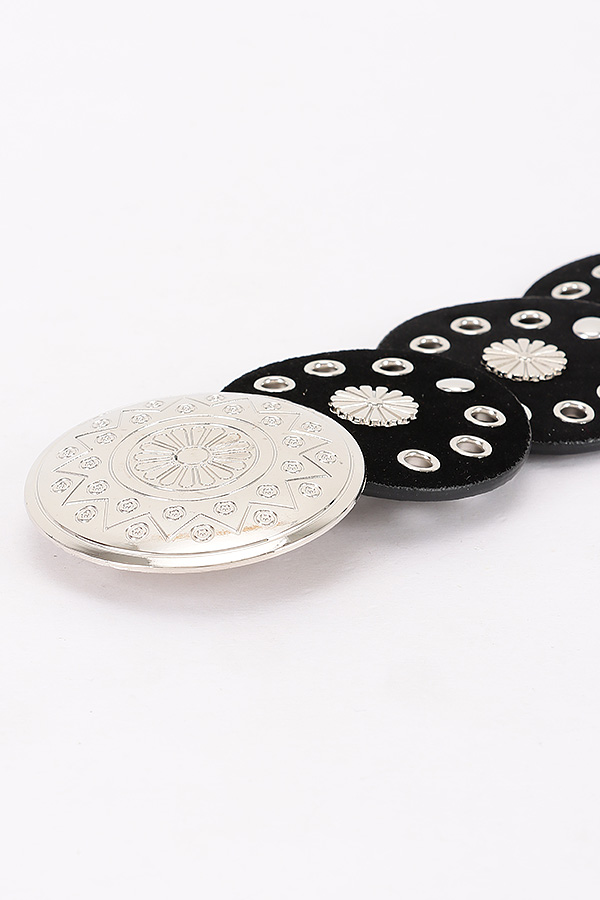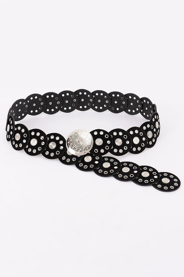 - * This is a distinctive belt featuring a series of circular elements. It has a large, ornate central buckle and multiple circular decorations with intricate patterns. The belt has a unique, eye - catching design. From H&D Accessories, it combines bold styling and detailed craftsmanship for a standout accessory.
