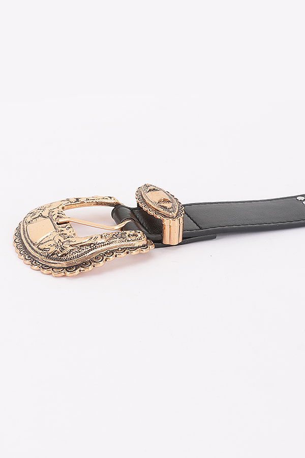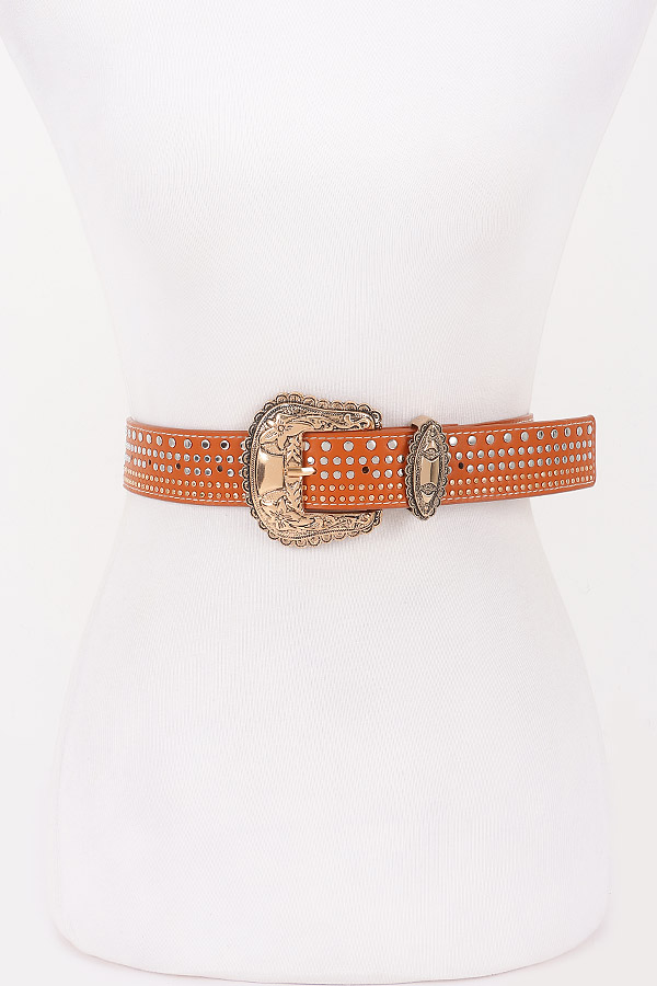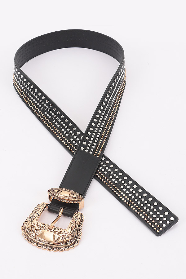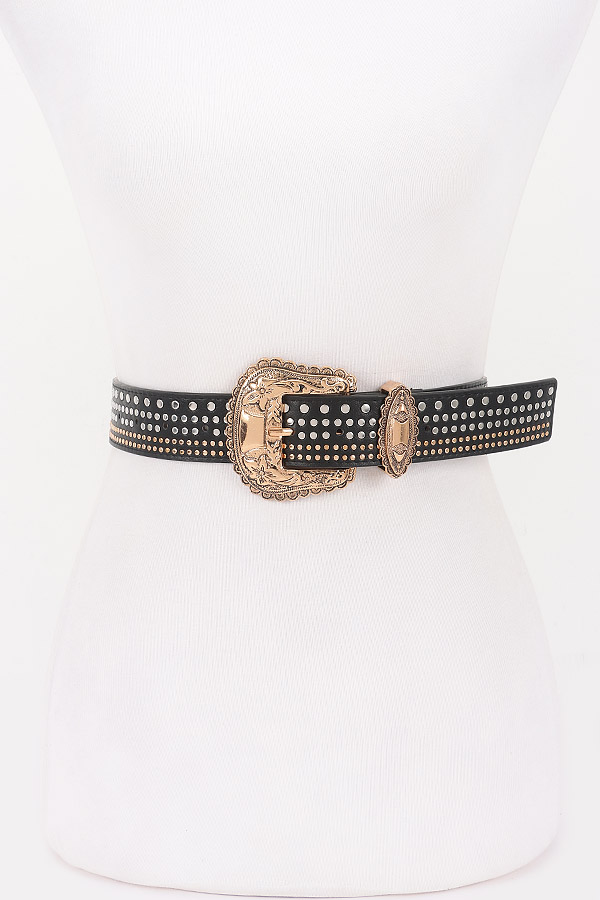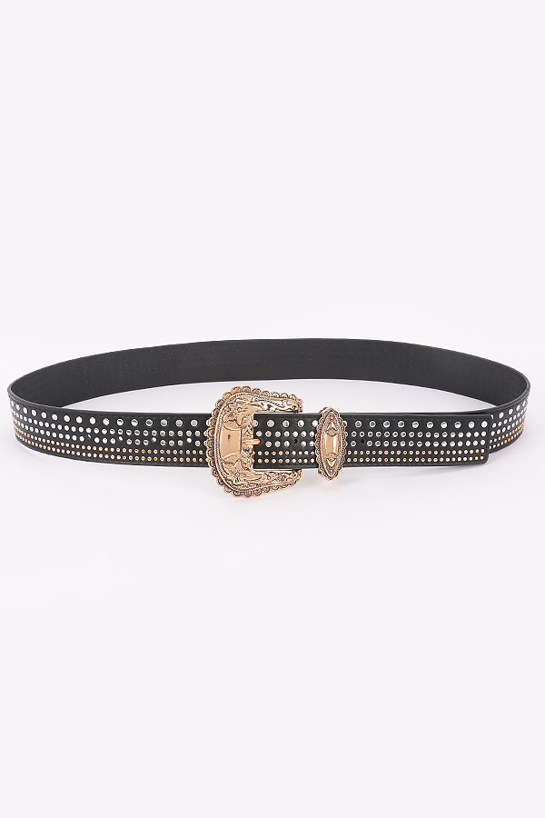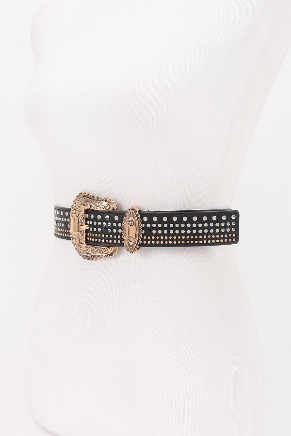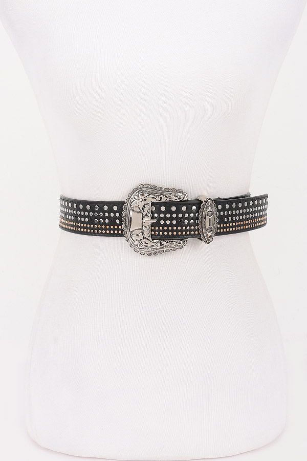 - * This Faux Leather Studded Western Belt from H&D Accessories features a faux leather construction with stud embellishments and an ornate buckle. It has a classic western - style design, giving it a stylish and retro - inspired appearance.