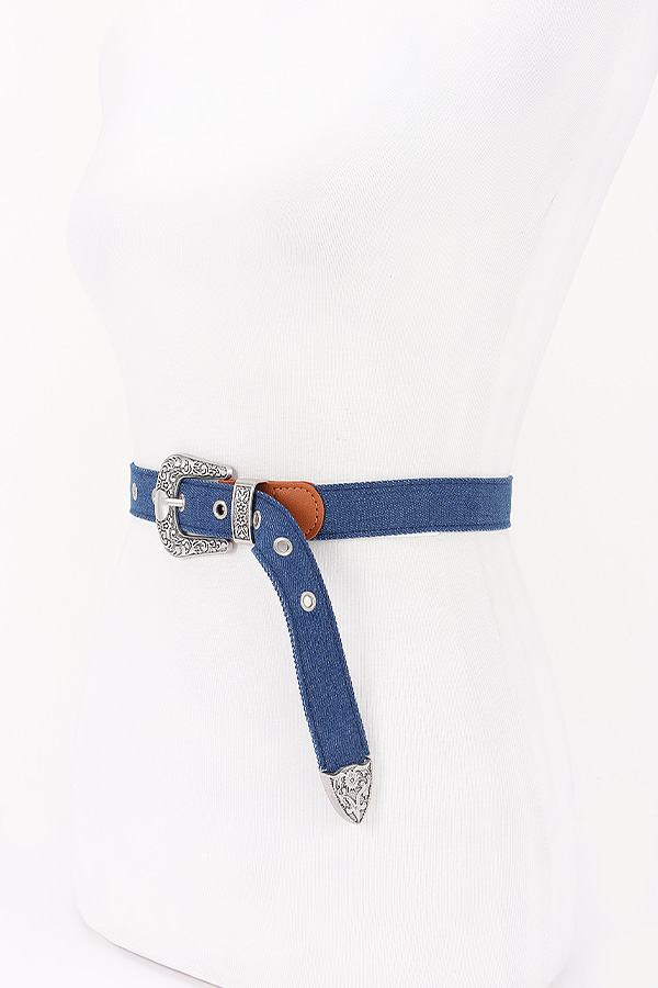 - * This Denim Multi Metal Buckle from H&D Accessories features a denim design with an ornate multi - metal buckle. It has a stylish and western - inspired appearance, giving off a casual and trendy vibe.Ideal for adding a western touch to everyday outfits, such as pairing with jeans, a dress, or a skirt, when going for a walk, shopping, or hanging out with friends.
